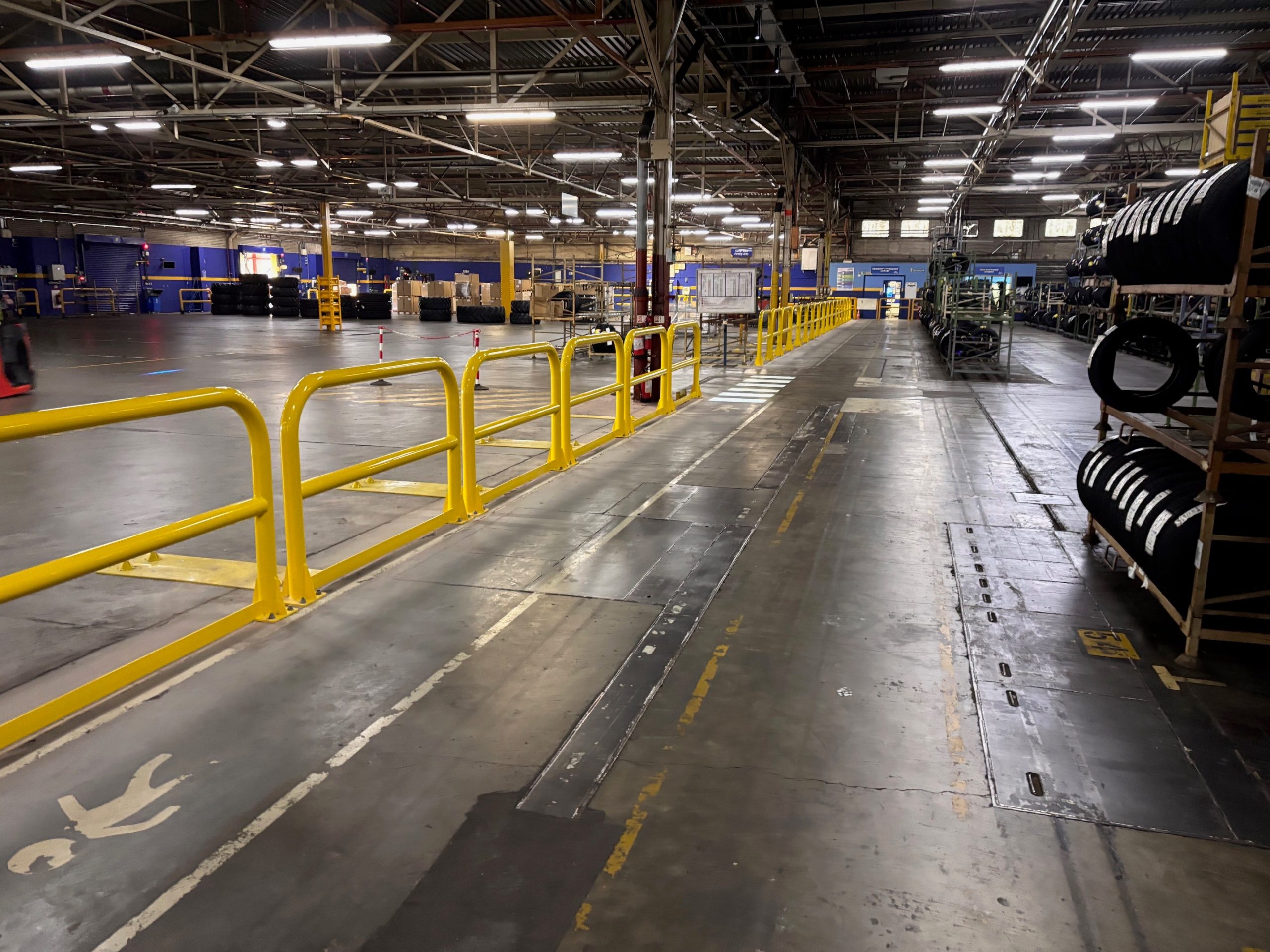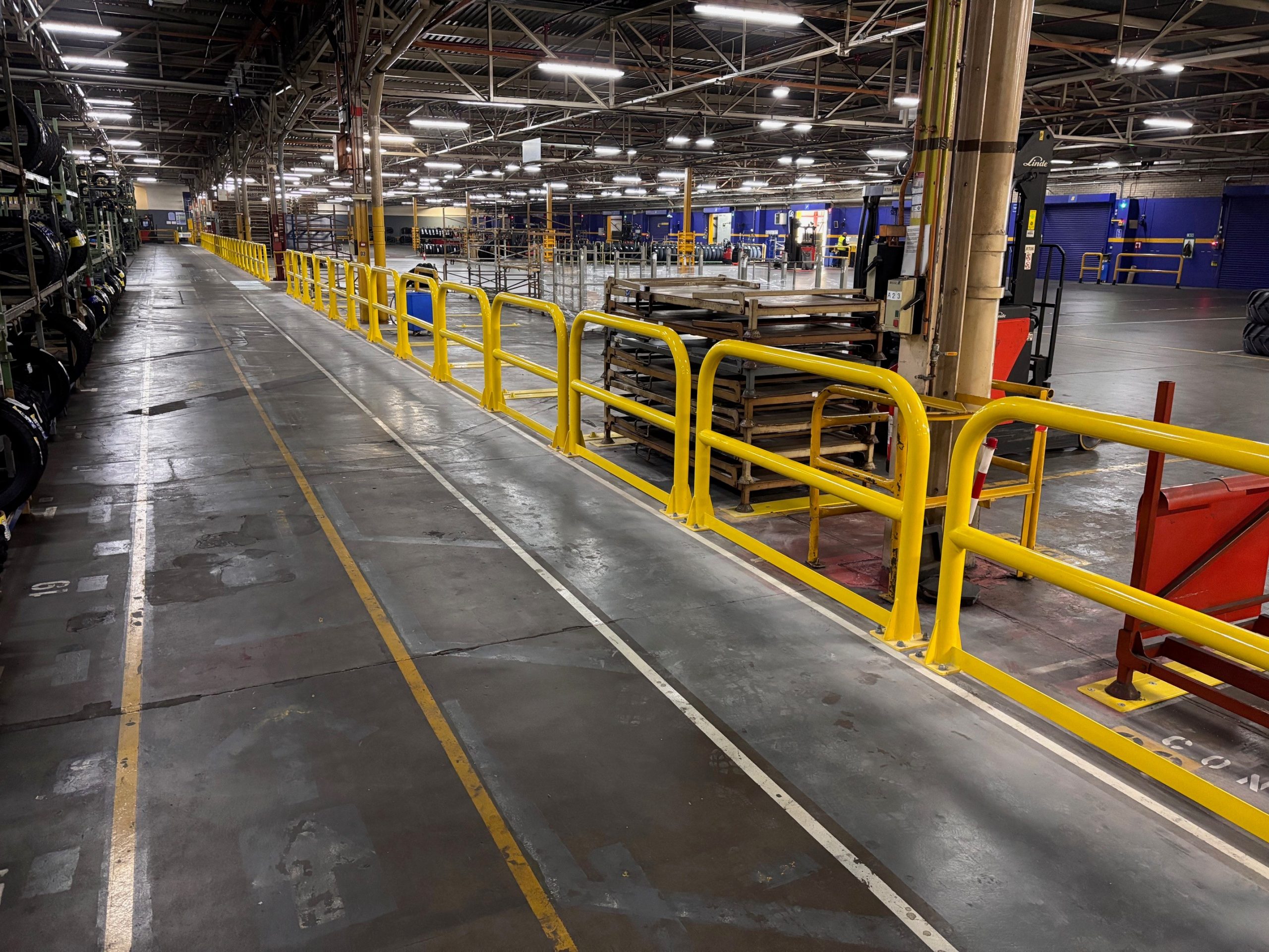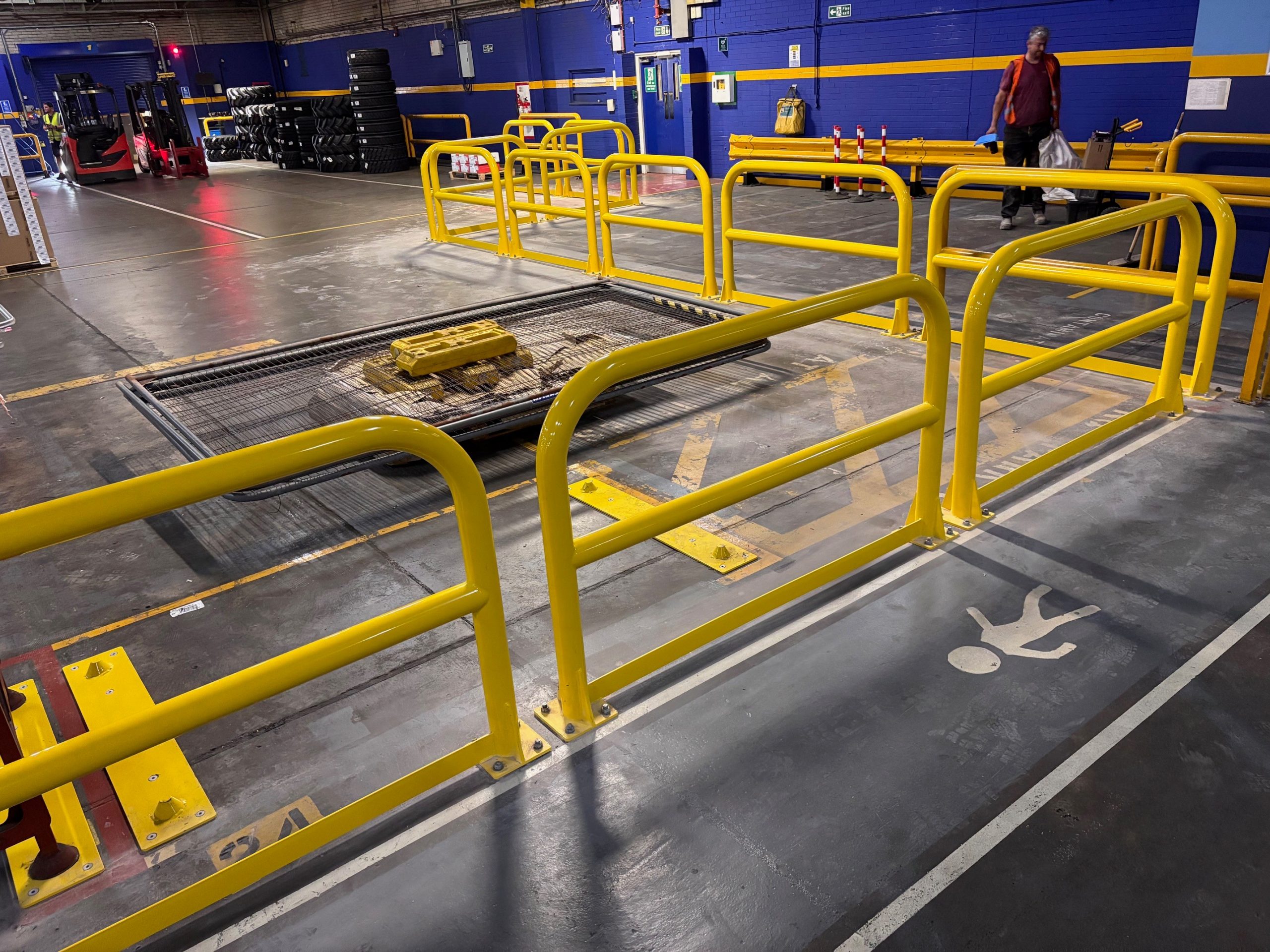 Steel barriers, powder coated yellow manufactured and installed by D-Fabs Ltd.