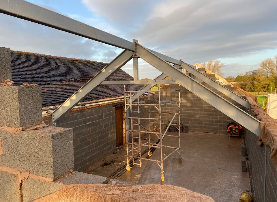 Structural steelwork manufactured and installed by D-Fabs to form a new extension for the customer.